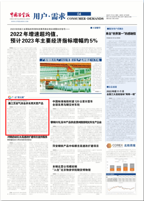 1月10日,《中国冶金报》刊登了《綦江页岩气田全井采用天管产品》,现将文章转发如下。