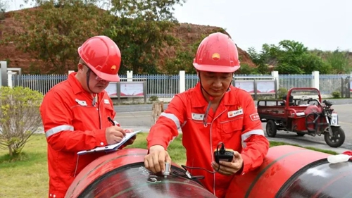 为满足“深地川科1井”重点项目开钻周期,天津钢管成立专题项目组,与大冶特殊钢有限公司、浙江泰富无缝钢管有限公司等中信泰富特钢集团旗下兄弟单位协同奋战,共同完成了超大口径套管保供生产任务。目前,天津钢管生产的首批套管已运送至油田。
