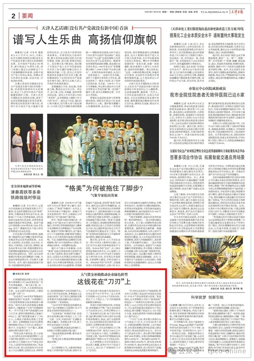 7月29日,《天津日报》刊发报道《大气资金补助推动企业绿色转型 这钱花在“刀刃”上》,现全文转发。